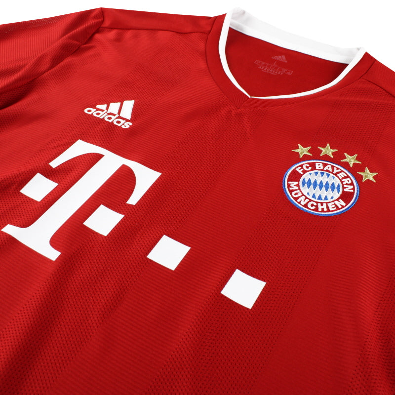 Home shirt as worn when Bayern Munich won the Bundesliga title for the ninth consecutive season with the team finishing 13 points of ahead second placed RB Leipzig. Also worn when the team won the FIFA Club World Cup, beating Tigres UANL 1-0 in the final. The team however could not repeat as European champions after being knocked out in the quarter finals of the Champions League by Paris Saint Germain on away goals after the tie finished 3-3 on aggregate.