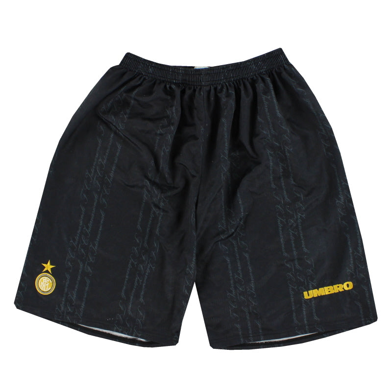 Home shorts as worn when Inter Milan finished 3rd in Serie A, finishing 6 points behind champions Juventus, and were knocked out in the semi finals of the Coppa Italia, losing 5-3 on penalties against Napoli after the tie finished 2-2 on aggregate. Also worn when Inter made it to the final of the UEFA Cup where they lost 4-1 on penalties against Schalke after the tie finished 1-1 on aggregate.