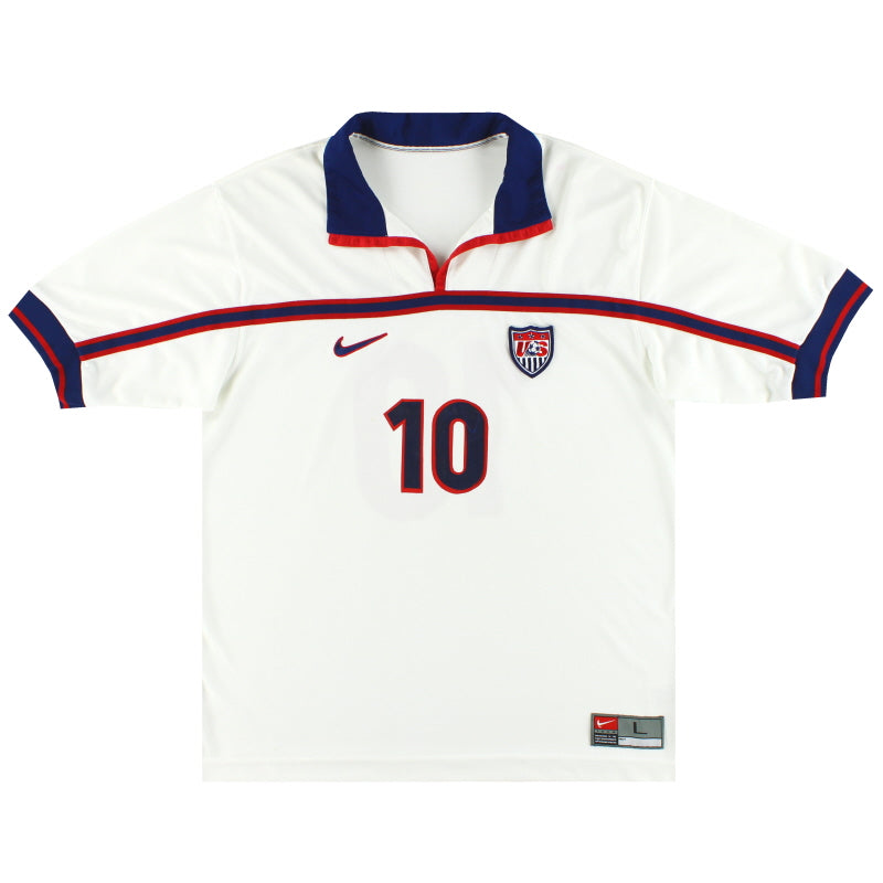 Home shirt as worn when the United States were competing in the 1998 World Cup, being knocked out in the group stage of the competition, finishing bottom of their group after losing all three of their games.