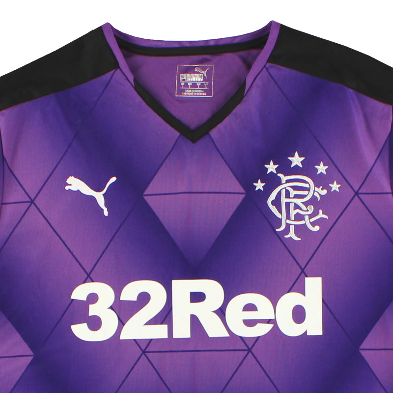 Purple third shirt as worn when Rangers were promoted back to the Scottish Premiership for the first time since 2012 after finishing as champions of the Scottish Championship and also made it to the Scottish Cup final, losing 3-2 against Hibernian