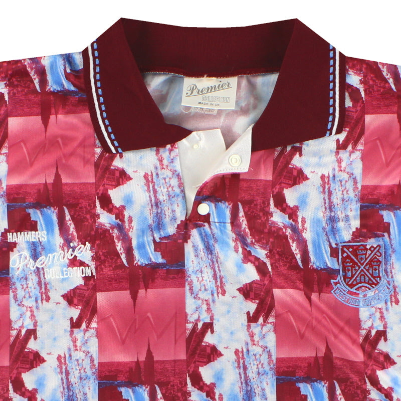 Details - Training shirt as worn when West Ham were relegated from the First Division after finishing bottom of the league, 6 points from safety, and made it to the last 16 of the FA Cup, losing 3-2 in a replay against Sunderland.