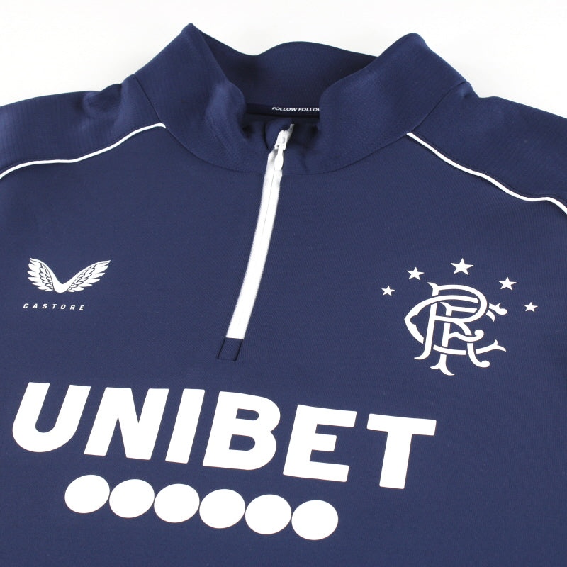 Details - 1/4 zip training top as worn when Rangers finished as champions of the Scottish Premiership for the first time for a decade, preventing Celtic from becoming the first club in Scottish Football history to win 10 consecutive league titles.
