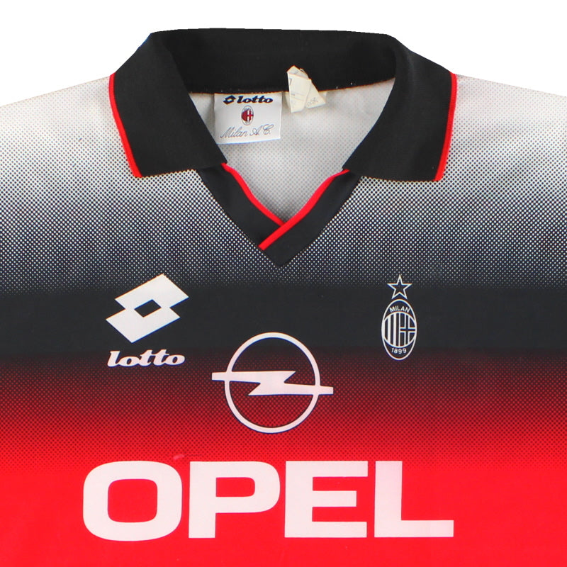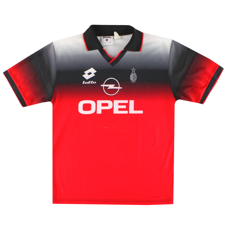Training shirt as worn in a disappointing season for Milan, finishing 11th in Serie A, after Fabio Capello left to join Real Madrid. It was also captain Franco Baresi's last season, with the club retiring the #6 shirt as a honour.
