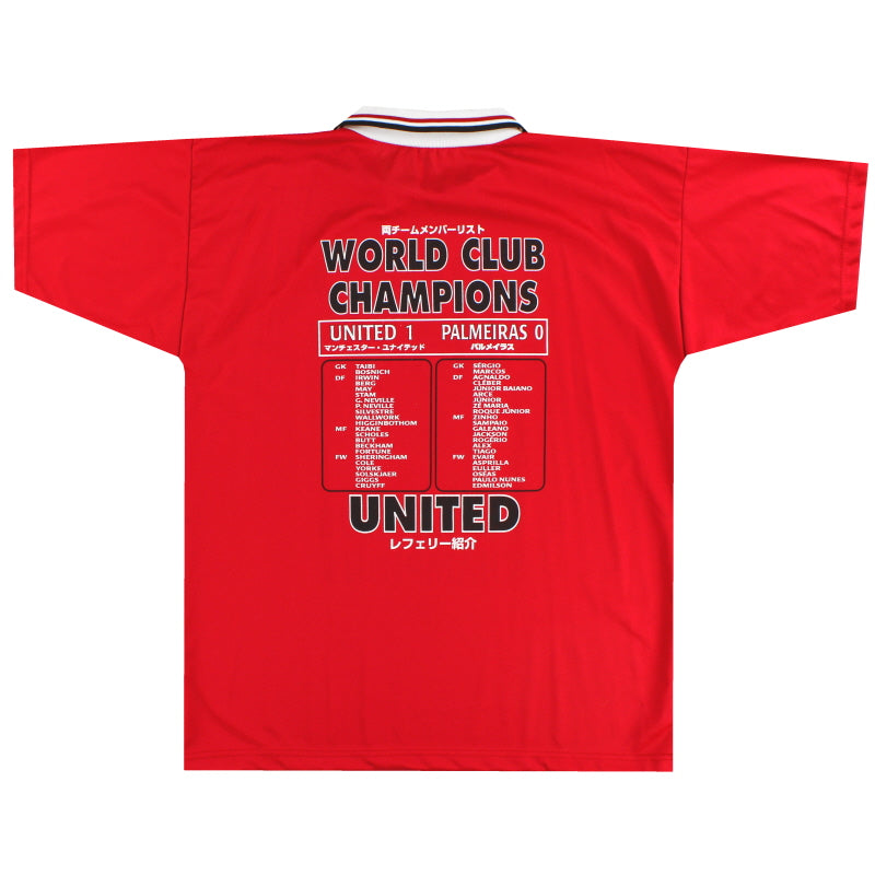 Details - Leisure shirt released to celebrate Manchester United winning the 1999 Intercontinental Cup final as they beat Palmeiras 1-0 in Tokyo thanks to a 35th minute goal by Roy Keane.