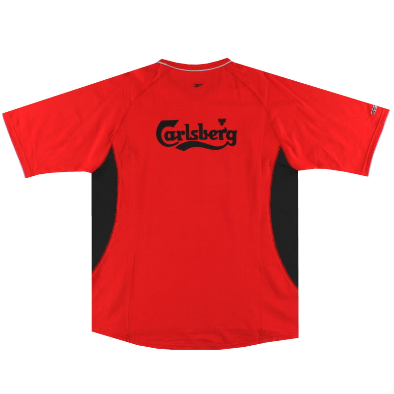 Training shirt as worn when Liverpool finished 3rd and 2nd in the Premier League in respective seasons and won a treble of cups in the 2000-01 season, winning the FA Cup, League Cup and UEFA Cup, beating Arsenal, Birmingham and Deportivo Alaves in respective competitions under Gerard Houlier.