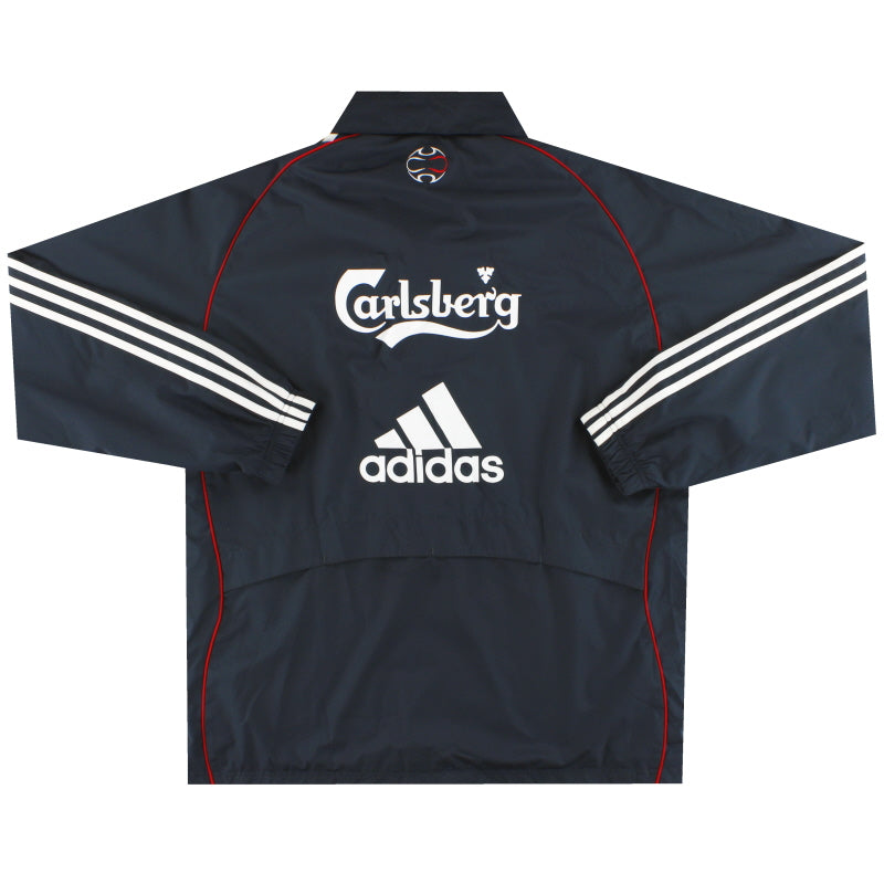 Details - Rain jacket as worn when Liverpool finished 3rd in the Premier League and were knocked out in the third round of the FA Cup, failing to defend the title after losing 3-1 against Arsenal. Also worn when Liverpool made it to the final of the Champions League, losing 2-1 against AC Milan with Filippo Inzaghi scoring a brace before Dirk Kuyt scored an 89th minute consolation goal.