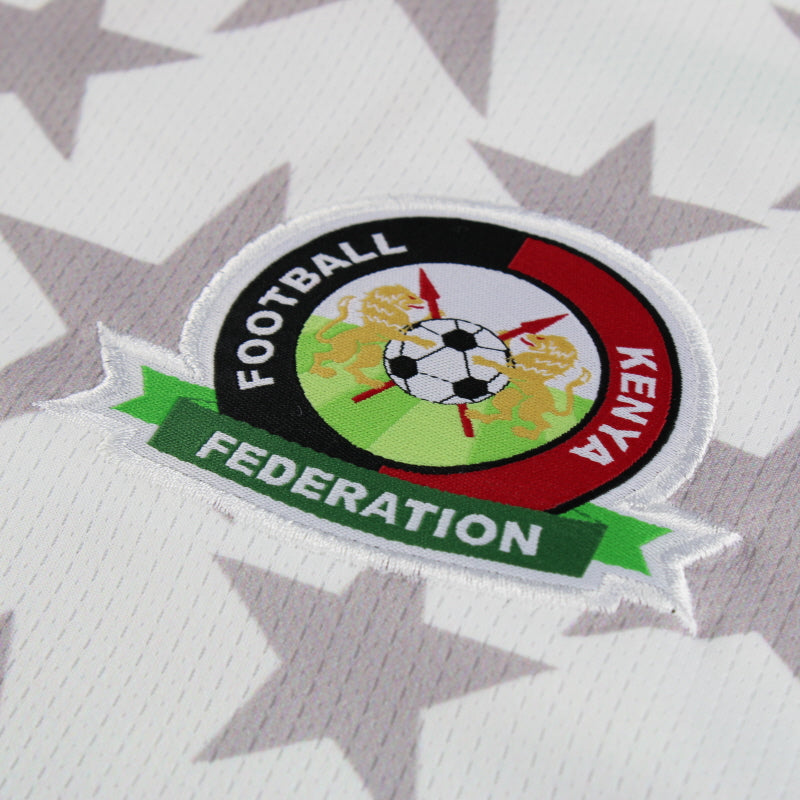 Away shirt as worn when Kenya were attempting to qualify for the 2019 Africa Cup of Nations, successfully qualifying for the competition after finishing as runners up in their qualification group.