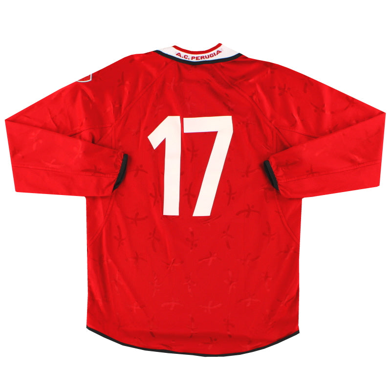 Home shirt as worn when Perugia finished 11th in Serie A and were knocked out in the first knockout round of the Coppa Italia, being knocked out on away goals against Salernitana after the tie finished 2-2 on aggregate.