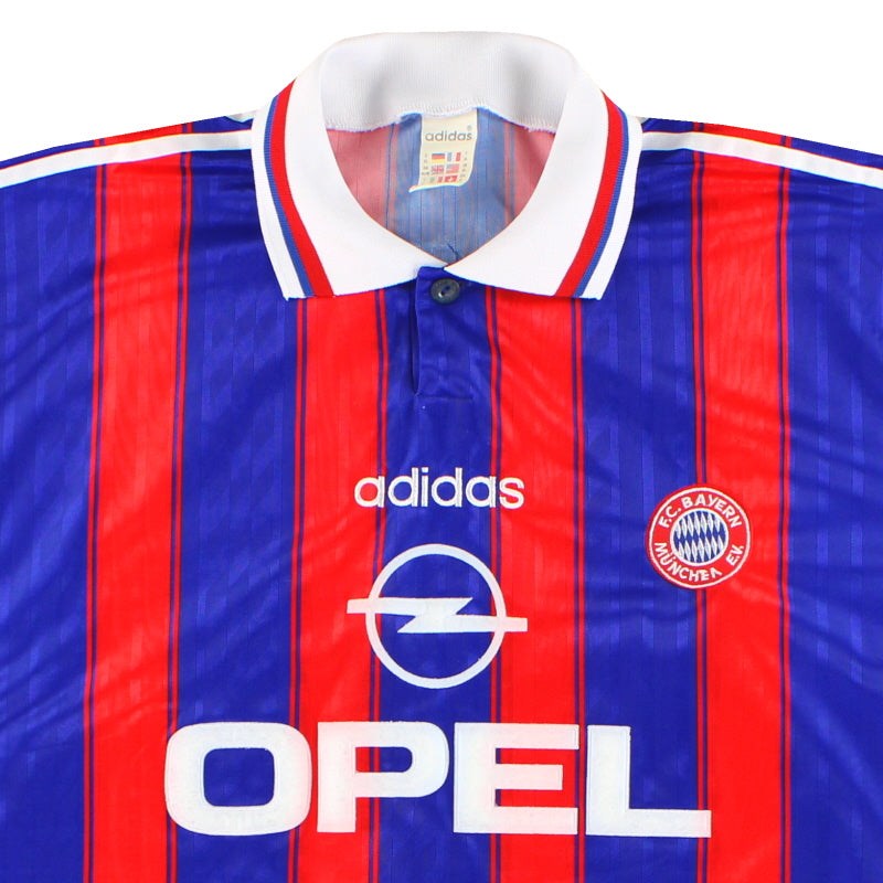 Home Shirt worn when Franz Beckenbauer briefly returned at the end of the 1995-96 season as caretaker coach and led his team to victory in the UEFA Cup 1995-96, beating Bordeaux in the final, for the 1996-97 season Giovanni Trapattoni returned to win the championship. But in the following season Bayern lost the title to the just promoted FC Kaiserslautern and Trapattoni had to take his leave for the second time