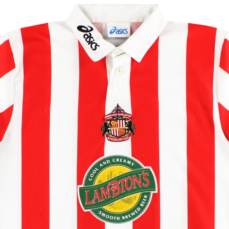 Details - Home shirt as worn when Sunderland failed to gain promotion in the first season after finishing 3rd in the First Division before losing 7-6 on penalties against Charlton Athletic in the play off final after the game finished 4-4 after extra time. However, they earned promotion to the Premier League in the next season after finishing as champions of the First Division with a then-record 105 points.
