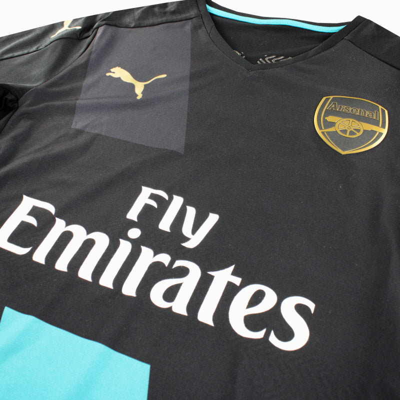 Details - Third shirt as worn when the club finished 2nd in the Premier League during Arsene Wenger's 20th season at the club. The Gunners also progressed from their Champions League group as runners-up behind Bayern Munich but were later knocked out of the competition by Barcelona