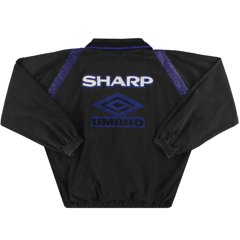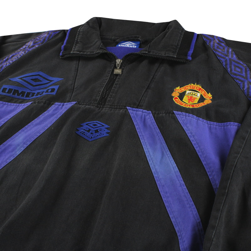 Details - Drill top as worn in a double winning season for Manchester United with the team beating Newcastle United to the Premier League title before beating Liverpool 1-0 in the FA Cup final with Eric Cantona scoring an 85th minute winner.