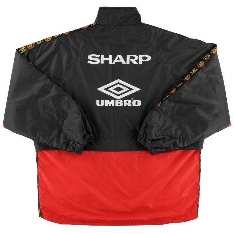 Details - Bench coat as worn when the side successfully defended their Premier League title finishing an impressive 7 points clear of Newcastle, Arsenal and Liverpool. United also lifted the Charity Shield, thrashing Newcastle 4-0 at Wembley, but could only reach the semi finals of the Champions League, losing 2-0 to Borussia Dortmund who went on the win the competition. The end of the season saw fan favourite Eric Cantona announce his retirement from the game at the age of just 30.