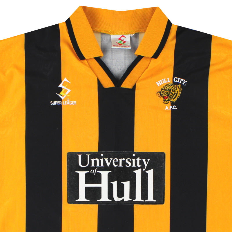 Home shirt as worn when Hull City finished 22nd in the Third Division under Mark Hateley. Also worn when the team made it to the third round of the League Cup, losing 2-0 against Newcastle United.