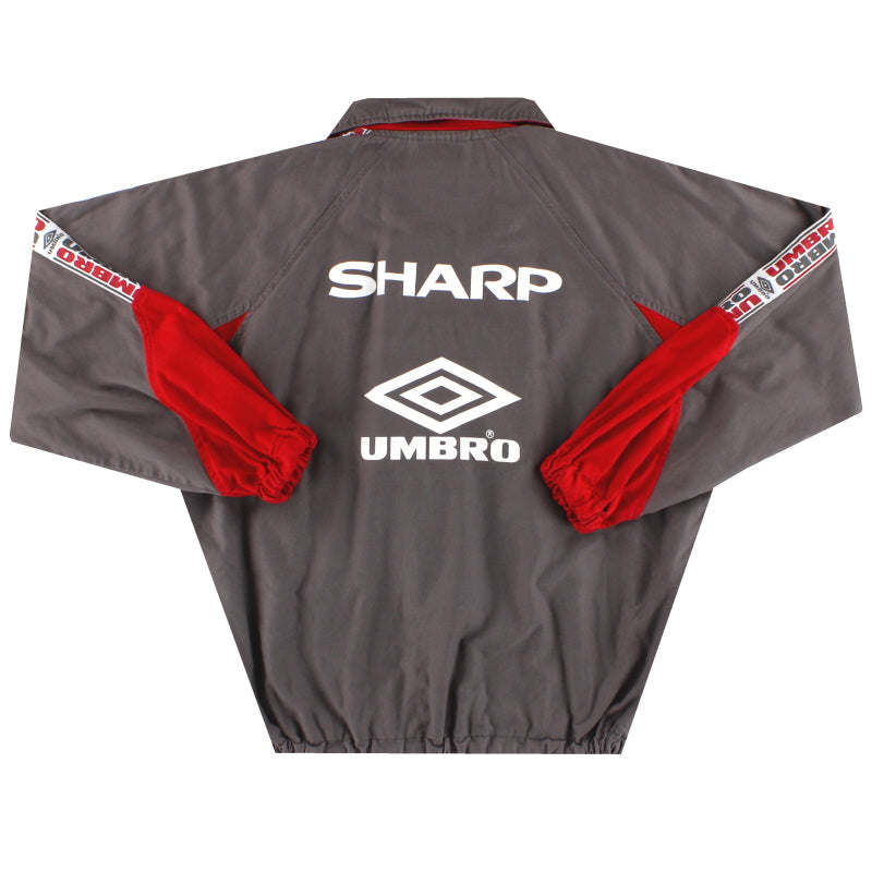 Details - Drill top as worn when United made history by becoming the first English team to complete the treble. The league title was contested all the way until the final game of the season where only a win would be enough with only a point separating United and Arsenal. A 2-1 win over Spurs saw United crowned Champions of England. The FA Cup saw United face Newcastle at Wembley where The Red Devils showed exactly why they were League Champions with a 2-0 win. Fours days later the treble was complete.