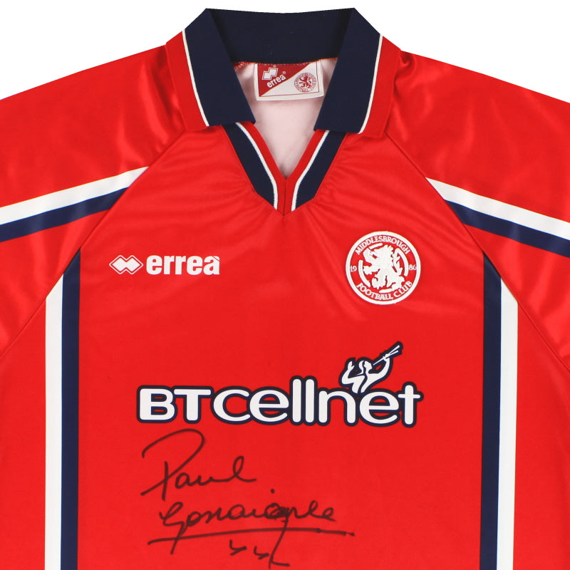 1999-00 Middlesbrough Errea 'Signed' Gascoigne #8 Home Shirt XL