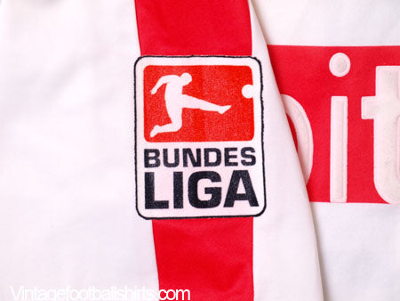 Details - Home shirt as worn when Stuttgart finished as runners up in the Bundesliga, finishing 16 points behind champions Bayern Munich, and were knocked out in the second round of the DFB-Pokal, losing 3-0 against Bayer Leverkusen. Also worn when Stuttgart were knocked out in the fourth round of the UEFA Cup, losing 5-4 on aggregate against Celtic.