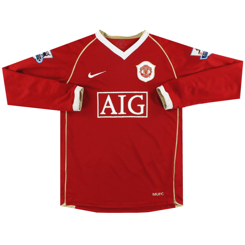 Details - The 2006 Manchester United home shirt was a limited edition, one year only design, a 1950's retro design as a tribute to the success of the Busby Babes. Worn in the successful 2006-07 season where the finished the season as Premiership Champions.