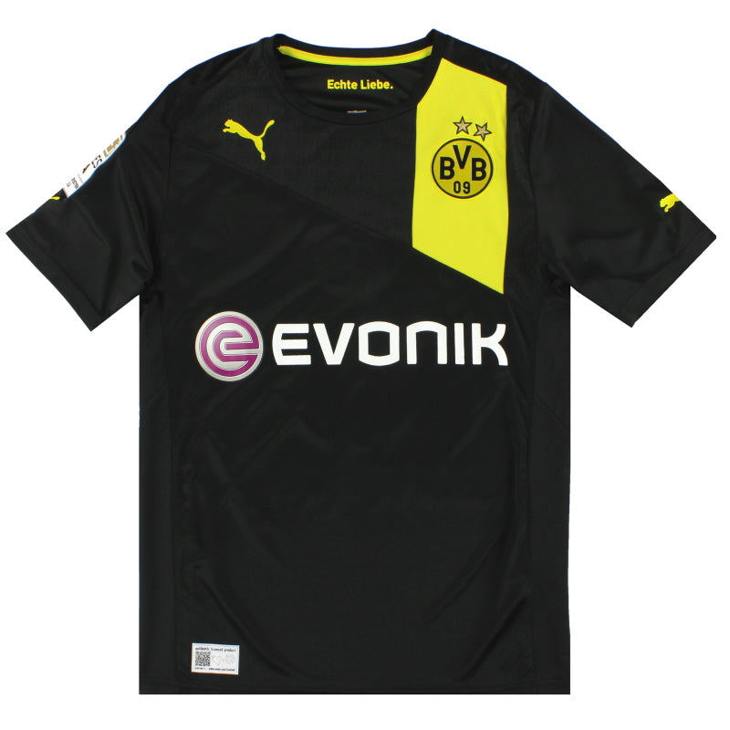 Details - Away shirt as worn when Borussia Dortmund finished as runners up in the Bundesliga, finishing 25 points behind champions Bayern Munich, and were knocked out in the quarter finals of the DFB-Pokal, losing 1-0 against Bayern Munich. Also worn when Dortmund made it to the final of the Champions League, losing 2-1 against Bayern Munich.