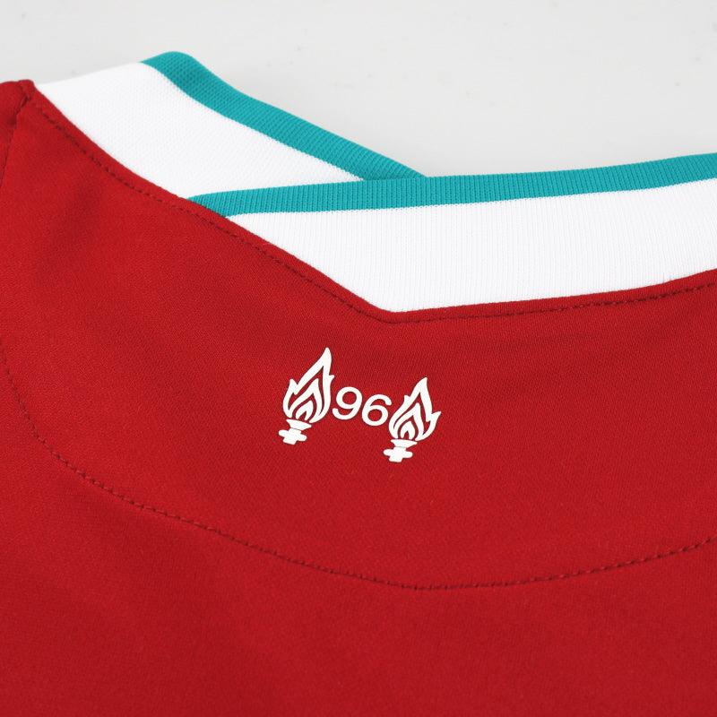 Details - Home shirt as worn when Liverpool were looking to defend their Premier League title from the previous season. At the end of last season saw controversy as the American giants Nike outbid New Blance for a 5 year kit sponsorship , ending a 6 year stint for New Balance. The season started well for Liverpool with the team being top of the table, on 22 November 2020, they broke the club record for longest unbeaten run at home in the league (which had previously stood at 63) . At the the turn of the year, but the team suffered from a poor run of form in the middle of the season in a run that saw the team win only 3 out of 14 Premier League games and fall down the table and out of the European places. However, fortunes changed for Liverpool as the team managed to win 8 of their final 10 games ,which included goalkeeper Alisson scoring a stoppage-time winner against West Brom (the first goal ever scored by a Liverpool goalkeeper in the 129-year history of the club) and secure a 3rd place finish in the Premier League and Champions League football for the next season.