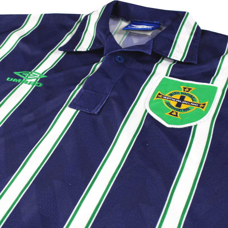 Details - Away shirt as worn when Northern Ireland were attempting to qualify for the 1994 World Cup, failing to qualify for the competition after finishing 4th in their group behind Spain, the Republic of Ireland and Denmark.
