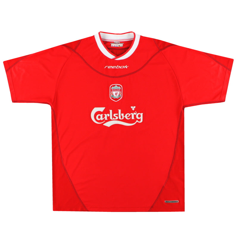 Home shirt as worn when Liverpool finished 5th and 4th in the Premier League respectively and won the 2003 League Cup final, beating Manchester United 2-0 with goals from Steven Gerrard and Michael Owen.