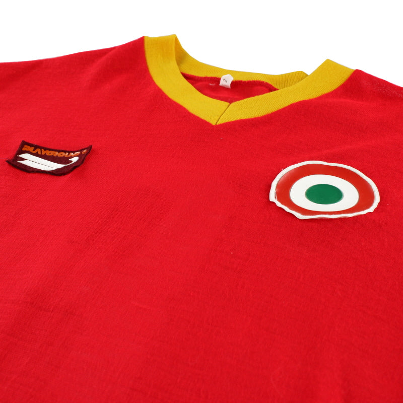 Details - European shirt believed to have been worn by Domenico Maggiora in the second leg of the first round tie of the European Cup Winners Cup against Ballymena United. The game finished 4-0 to Roma with goals from Luciano Spinosi, Paolo Giovanelli and a brace Roberto Pruzzo. Roma were then knocked out in the next round of the competition after losing 2-0 on aggregate against FC Porto. Maggiora spent 6 years of his career at AS Roma, appearing in 126 league games for the club and winning two Coppa Italia titles before leaving to join Sampdoria in 1982.