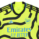 Details - The design showcases a bold shock-yellow base adorned with flowing black lines, inspired by the map of Islington to represent the travels of the club's fans for away matches. Light blue accents on the collars and sleeves add a touch of vibrancy, honouring the club's strong ties to its North London heritage.