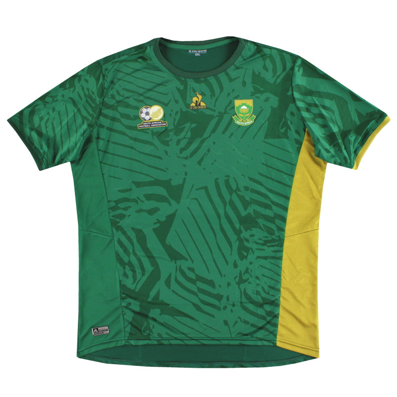 The 2023 away shirt in green and gold showcases a subtle graphic pattern on the front. All kits were designed by fans, with South African designer Lwazi Ngcungama emerging as the winner through a fan vote.