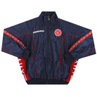 Details - Track jacket as worn when Ajax finished as champions of the Eredivisie, finishing 17 points clear of second placed PSV, and also won the KNVB Cup, beating PSV 5-0 in the final. Also worn when Ajax made it to the quarter finals of the UEFA Cup, losing 4-1 on aggregate against Spartak Moscow.