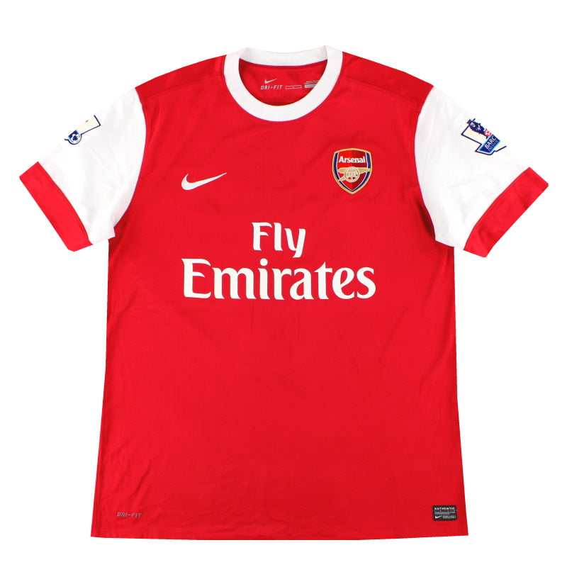 Arsenal were founded as Dial Square FC in 1886 and have Nottingham Forest to thank for their first ever kit. When several ex-Forest players joined the side they brought with them their old red football jerseys and it was decided that the most economical way to kit out the team was in the same colour. The jersey was dark red (or redcurrant as it was renamed when Nike memorably resurrected the design in 2005 to commemorate the club’s last season at Highbury) and was paired with white shorts and dark red or navy socks. The iconic Arsenal kit of red football shirts and white sleeves first appeared in 1933 when then manager Herbert Chapman devised the design in an attempt to create a more distinctive strip for his team. Legend has it that inspiration came from an individual Chapman spotted at Highbury who was wearing a red tank-top over a plain white shirt. The highly individual look is much loved by Arsenal fans who were delighted when Nike launched a classic interpretation of the jersey in 2010 after a few years of ‘tampering’. Gooners are equally as passionate about their preferred away kit colours and almost unanimously opt for yellow and blue - a colour scheme that gained popularity in the 1970s. Prior to then, white and occasionally navy football shirts were the away colours of choice. Navy has actually played an important part in Arsenal’s colour identity over the years and has featured in many home and away kits. Arsenal embraced shirt sponsorship in 1981 when they struck a deal with Japanese electronics company JVC. The relationship was to last until 1999 and since then the company have only had three sponsorship deals: Sega/Dreamcast, O2 and Emirates Airlines, creating one of the smallest sponsor role calls in English football