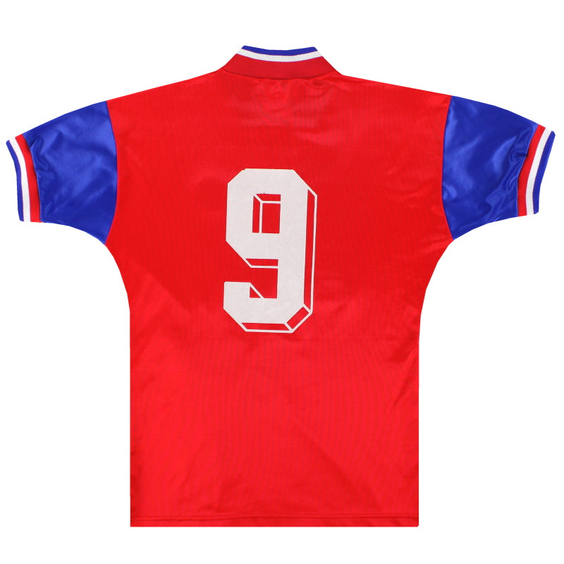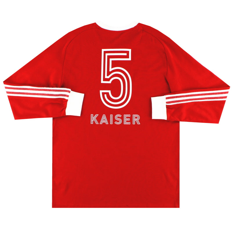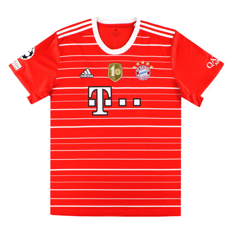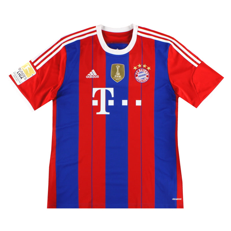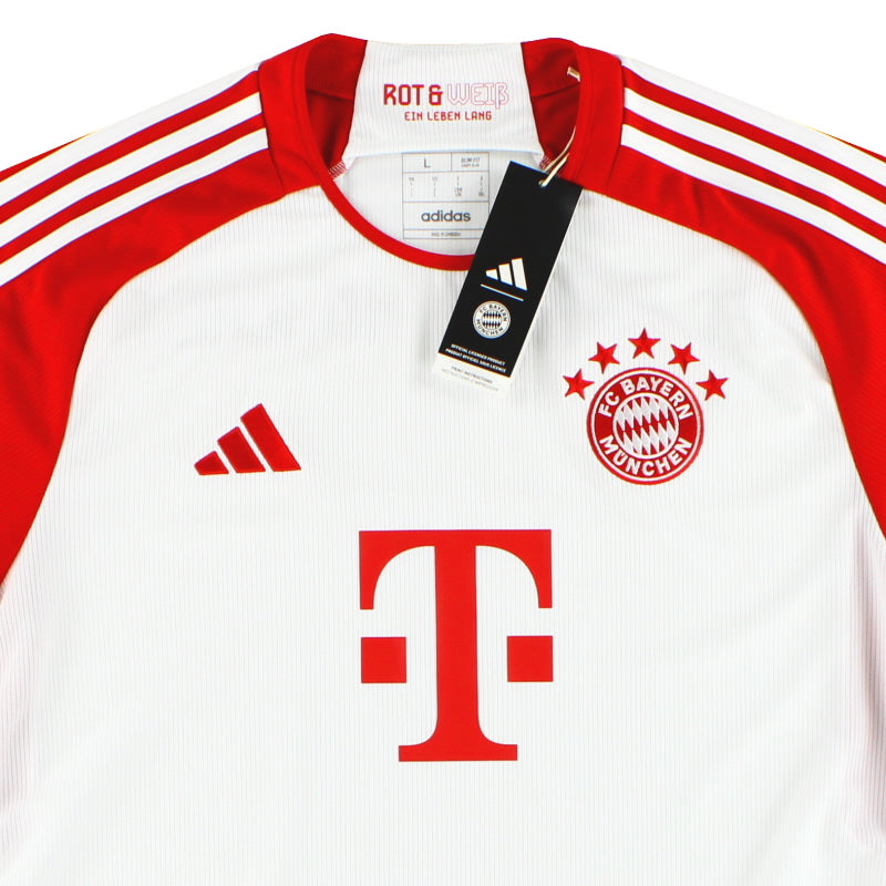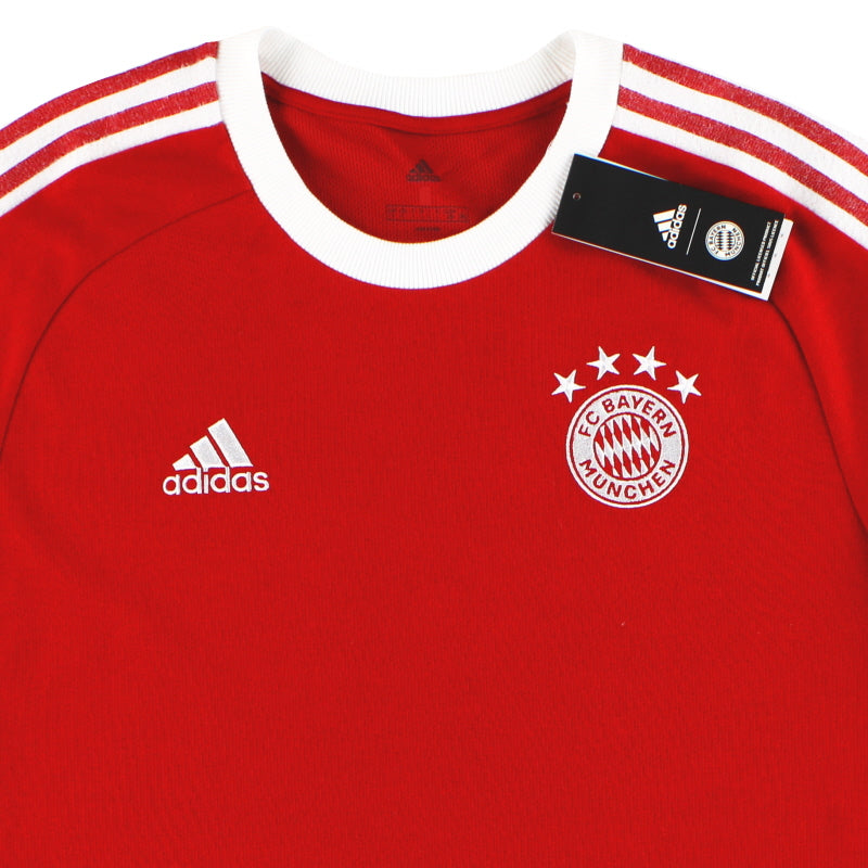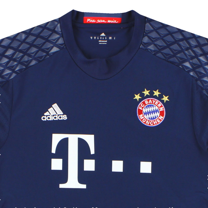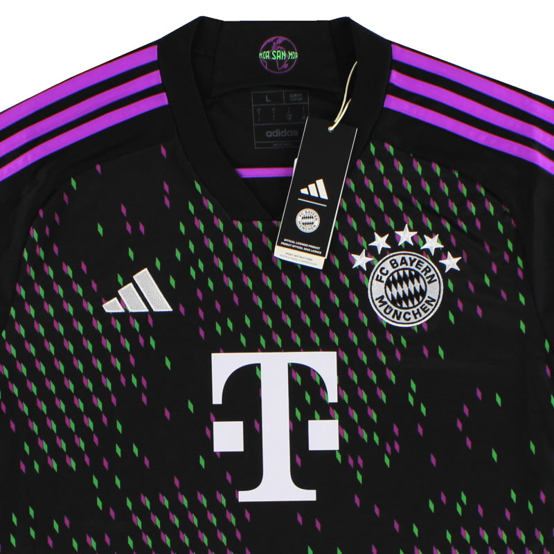 Being a Bayern Munich shirt collector must require a lot of storage space as the German giants have worn an incredible number of kits in the past 30 or so years. Red of course is the favoured home colour (although originally white shirts were worn with red only arriving in 1905 when the side joined forces with Munchner Sport-Club who insisted on changing the jersey colour) and on more than one occasion the side have worn several different designs of home kit in the same season. Bayern are also one of the leading pioneers of adopting a completely different kit for Champions League and Cup games - often in a totally different colour. Although white has always been used to trim the Bayern shirt in the early 90s blue also began to creep in as an additional trim colour culminating in the Barcelona-like 1995 striped jersey. More recently red and white hoops or stripes have also been sported. The Bayern shirt is also renowned amongst football kit afficiandos for having the club name printed on the back of the shirt - probably something to do with the fact that in recent years a badge didn't appear regularly on the front of the jersey until 1989! White shirts are the most traditional Bayern change outfits although in the 80s and 90s the club had an unusual tradition of wearing yellow and green for luck when playing their rivals FC Kaiserslautern. The club have stayed loyal to local suppliers when it comes to kit and have been with adidas since the early 1970s. In fact for several years adidas also acted as shirt sponsor for the side before being replaced by Magirus Deutz in 1979. Iveco, Commodore and Opel have subsequently sponsored the team with mobile phone company T-Mobile arriving in 2002.