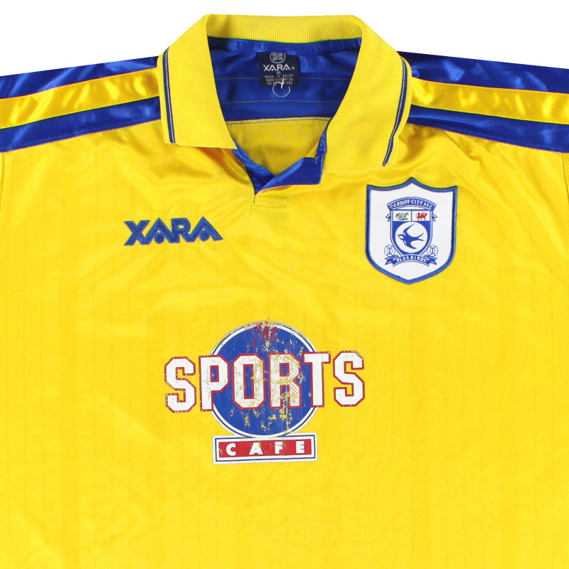 Details - Away shirt as worn when Cardiff City won automatic promotion to the Second Division after finishing 3rd in the Third Division and made it to the fourth round of the FA Cup, losing 4-1 against Sheffield United.