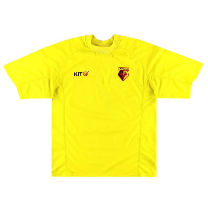Home shirt as worn when Watford finished 16th in the First Division and were knocked out in the third round of the FA Cup, losing 4-0 against Chelsea in a replay. Also worn when Watford were knocked out in the second round of the League Cup, losing 1-0 against Bristol City.