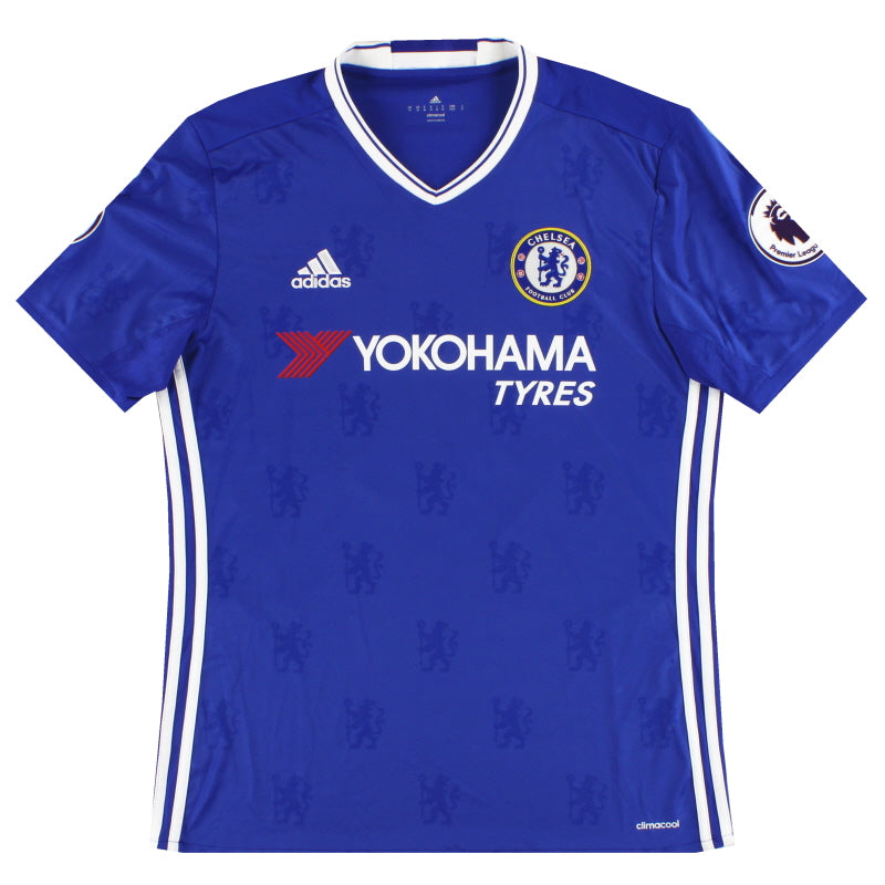 Details - Home shirt as worn in Antonio Conte's first season in charge of Chelsea, leading the club to their second Premier League title in three years as they finished 7 points clear of second placed Tottenham. The club also made it to the final of the FA Cup, but could not complete a domestic double, losing 2-1 against Arsenal.