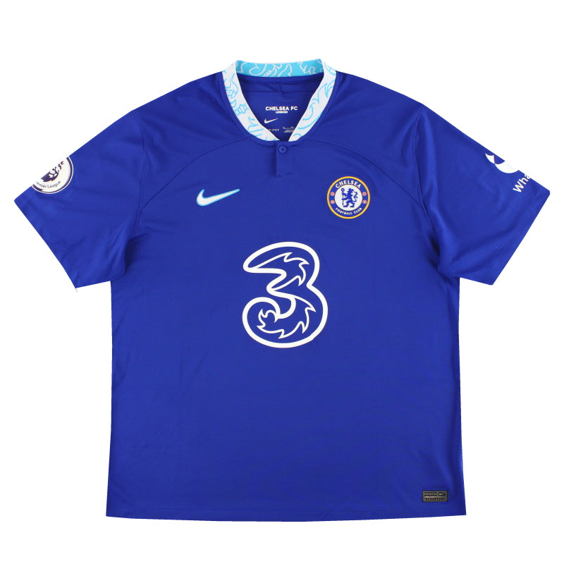 Home shirt as worn when Chelsea were looking to improve on their 3rd place finish in the Premier League in Todd Boehly's first full season as owner. Chelsea finished the season in mid table in the Premier League with a disappointing start to the season leading to the sacking of Thomas Tuchel. Graham Potter took over as manager and form did not improve with Chelsea only winning 12 of their 31 games with Graham Potter as manager before Frank Lampard took over as interim manager until the end of the season.