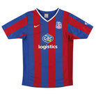 Home shirt as worn when Crystal Palace managed to avoid relegation on the last day of the season, holding Sheffield Wednesday to a 2-2 draw after they were given a 10 point deduction for entering administration, and were knocked out in the last 16 of the FA Cup, losing 3-1 against Aston Villa in a replay with John Carew scoring two late penalties.
