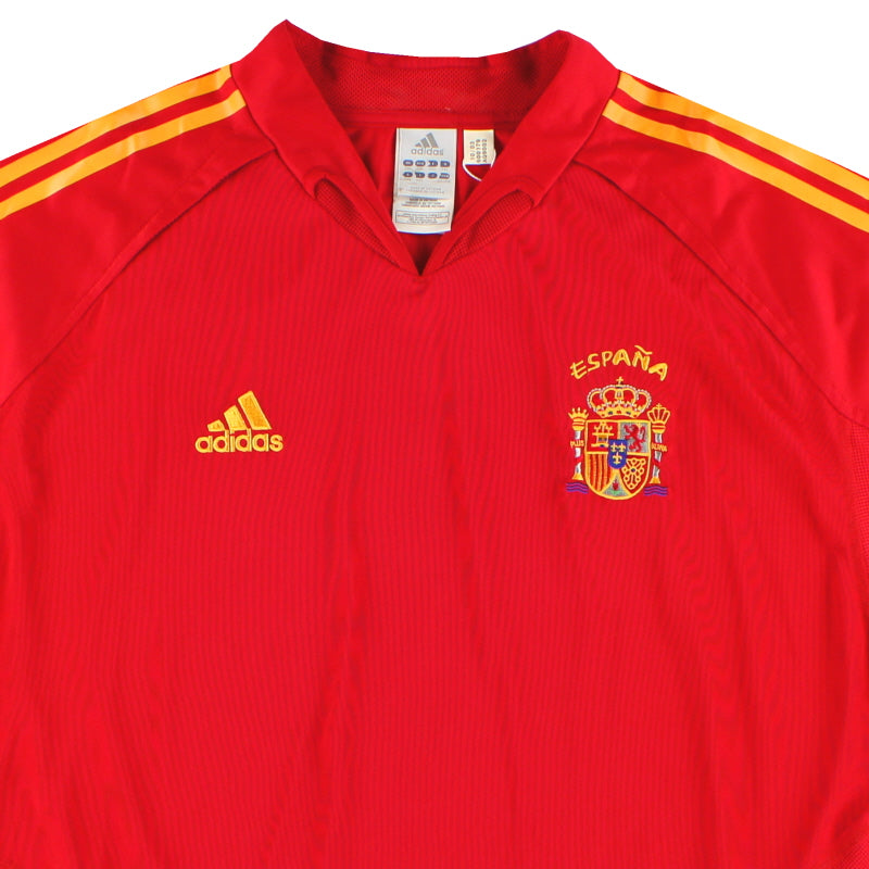 Home shirt as worn in Euro 2004 when Spain finished 3rd in the group behind eventual finalists Portugal and Greece after losing against Portugal and drawing against Greece in the group stages.