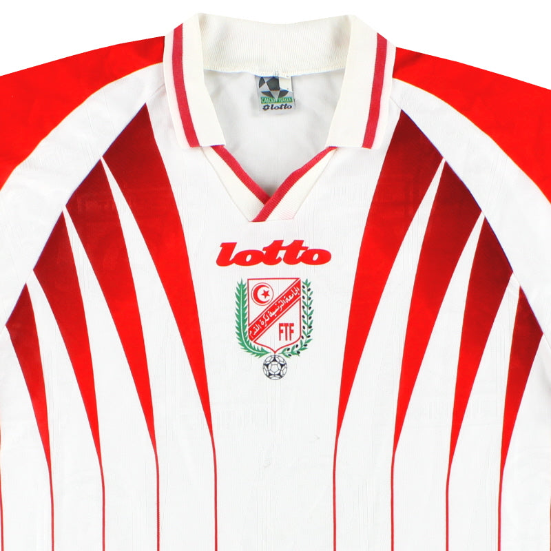 Details - Rare Away shirt as worn by Tunisia during the 1998 World Cup in France, the African side were drawn into a group with Romania, England and Colombia but unfortunataly finished bottom of the group.