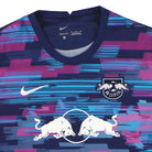 The RB Leipzig 2021-22 third shirt features a navy base complemented by pink, teal, and white accents. The official colours are listed as Midnight Navy and Hyper Pink