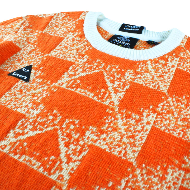 Lyle and Scott are back releasing the ‘Capsule Collection’ in the popular collaboration with Lovers FC, with the collection focusing on reimagined knitwear using some of football’s most iconic shirt designs with this orange geometric knitted jumper has to be one of the the most iconic patterns of all time. The signature Lovers FC logo is situated on the right side of the chest and signature Lyle And Scott golden eagle logo badge is stitched on the right sleeve.