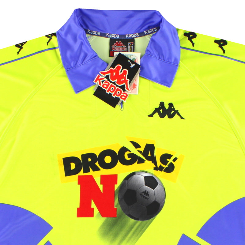 Although the brand and their iconic logo (comprising of a naked man and woman sitting back to back) have been, not surprisingly, most seen in their native Italy the company are known in the UK primarily for their groundbreaking and incredibly stylish kits for Tottenham Hotspur, Blackburn Rovers and Queens Park Rangers as well as the Welsh national side. Many of these shirts were part of the lycra-based Kombat range of very tight fitting shirts that was launched at Euro 2000 by the Italian national side. Designed to thwart the shirt-pulling phase that threatened to disrupt football in the late 1990s these shirts, although not popular with more rotund replica-wearing supporters, were clear trendsetters for the slim fit kits we see today.