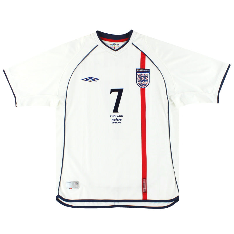 2001-03 England 'vs Greece' Umbro Home Shirt Beckham #7