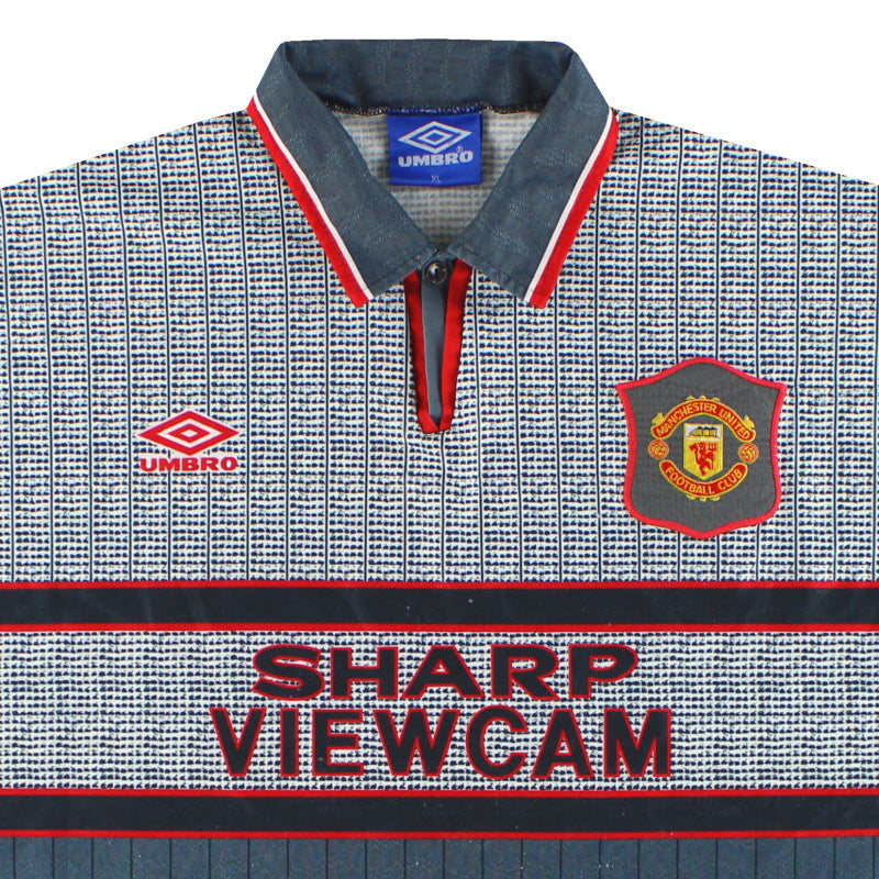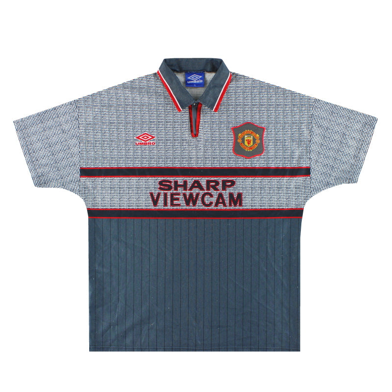 One of the most famous yet short-lived United shirts! after going 3-0 down at half time against Southampton at the Dell, the players blamed the bad performance on not being able to see each other, Alex Ferguson's first words in the dressing room were to believed to be 'Get that kit off, you're getting changed' and the team duly did, into their blue-and-white striped kit. There was a slight improvement after the break, as Ryan Giggs scored a late consolation. However, the grey 'Invisible' kit was scrapped.