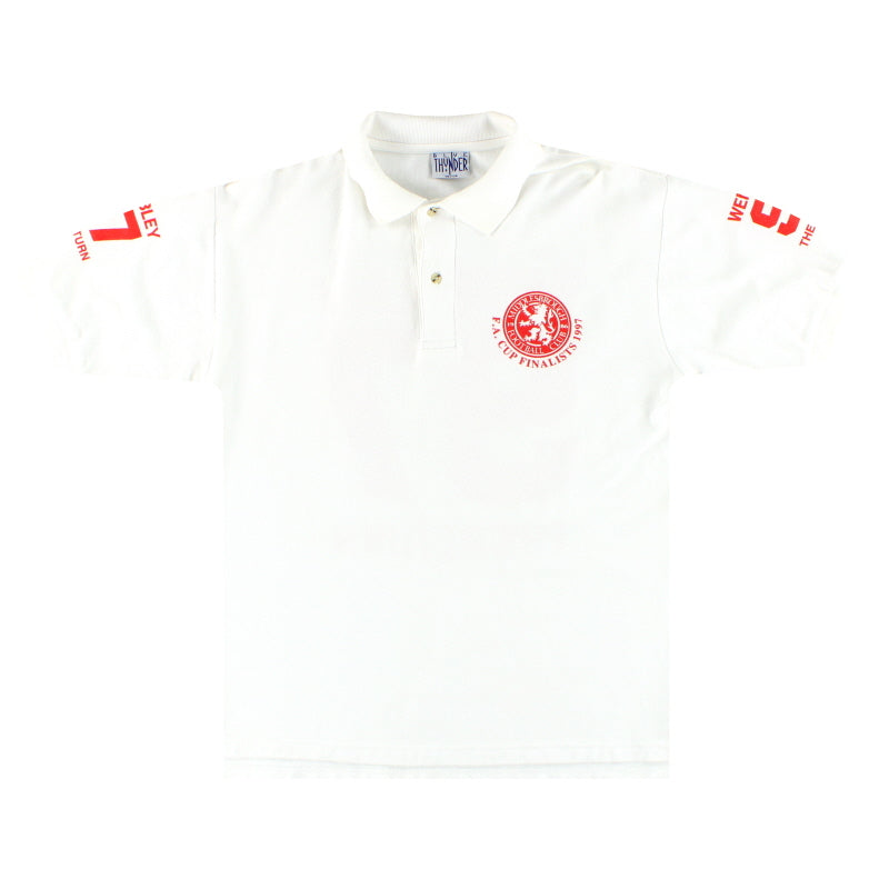 Polo shirt released when Middlesbrough were competing in the 1997 FA Cup final. The team lost the final 2-0 against Chelsea after goals from Roberto Di Matteo and Eddie Newton.