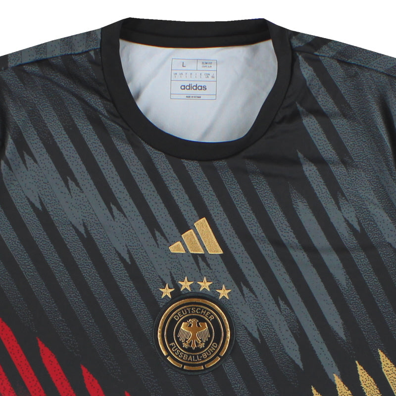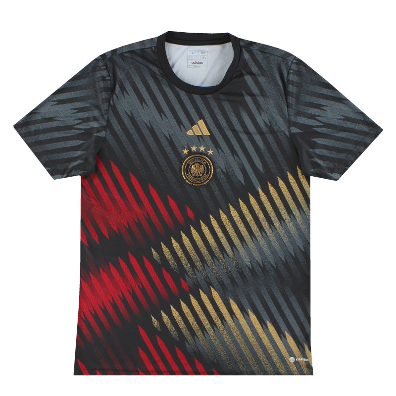 Pre match shirt as worn by Germany when they were competing in the 2022 World Cup in Qatar. Germany did not manage to get out of the group stage. This was the second successive time that Germany, four-time champions, crashed out of the FIFA World Cup in the group stage.