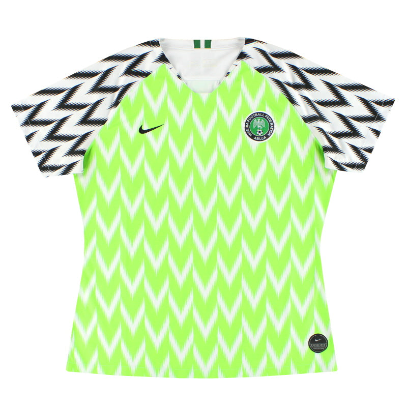 Home shirt as worn in the 2019 womens world cup held in France saw the them progress through the group stages winning over South Korea , in this game saw 18-year-old Nnadozie who became the youngest goalkeeper to keep a clean sheet at a World Cup . In round of 16 they became unstuck against Germany losing 3-0 sending the Super Falcons home .