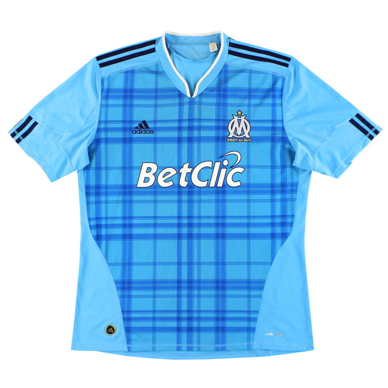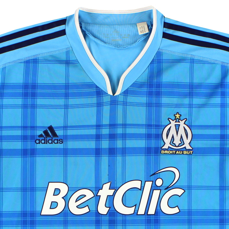 Away shirt as worn when Marseille finished as runners up in Ligue 1, finishing 8 points behind champions Lille, and won the Coupe de la Ligue, beating Montpellier 1-0 in the final. Also worn when Marseille were knocked out in the last 16 of the Champions League, losing 2-1 on aggregate against Manchester United.