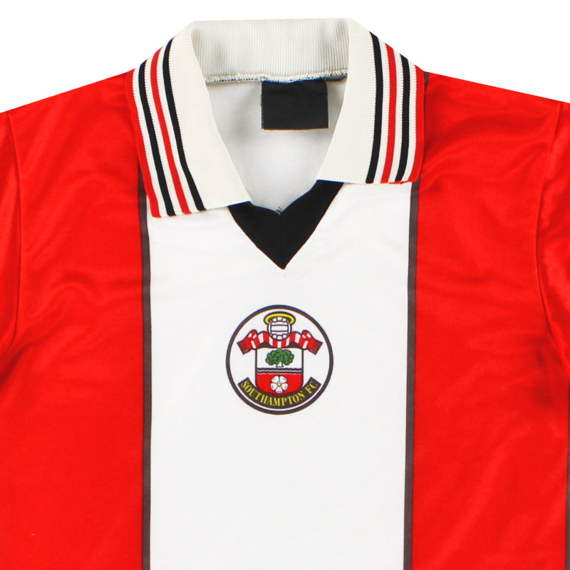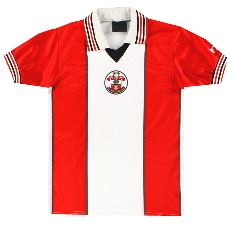 Details - Rare home shirt as worn when Southampton finished 2nd in the First Division under Lawrie McMenemy, finishing 3 points behind champions Liverpool, and also made it to the semi finals of the FA Cup, losing 1-0 after extra time against Everton.