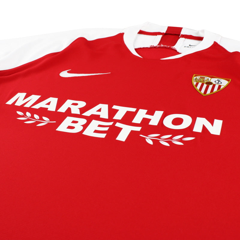 Away shirt as worn when Sevilla finished 4th in La Liga and were knocked out in the last 16 of the Copa del Rey, losing 3-1 against Mirandes. Also due to be worn as the club continue their Europa League campaign in the last 16 against Roma.